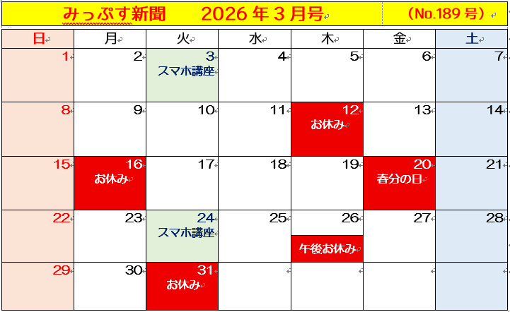 各教室のお休みなどは、各教室のカレンダーでご確認ください。